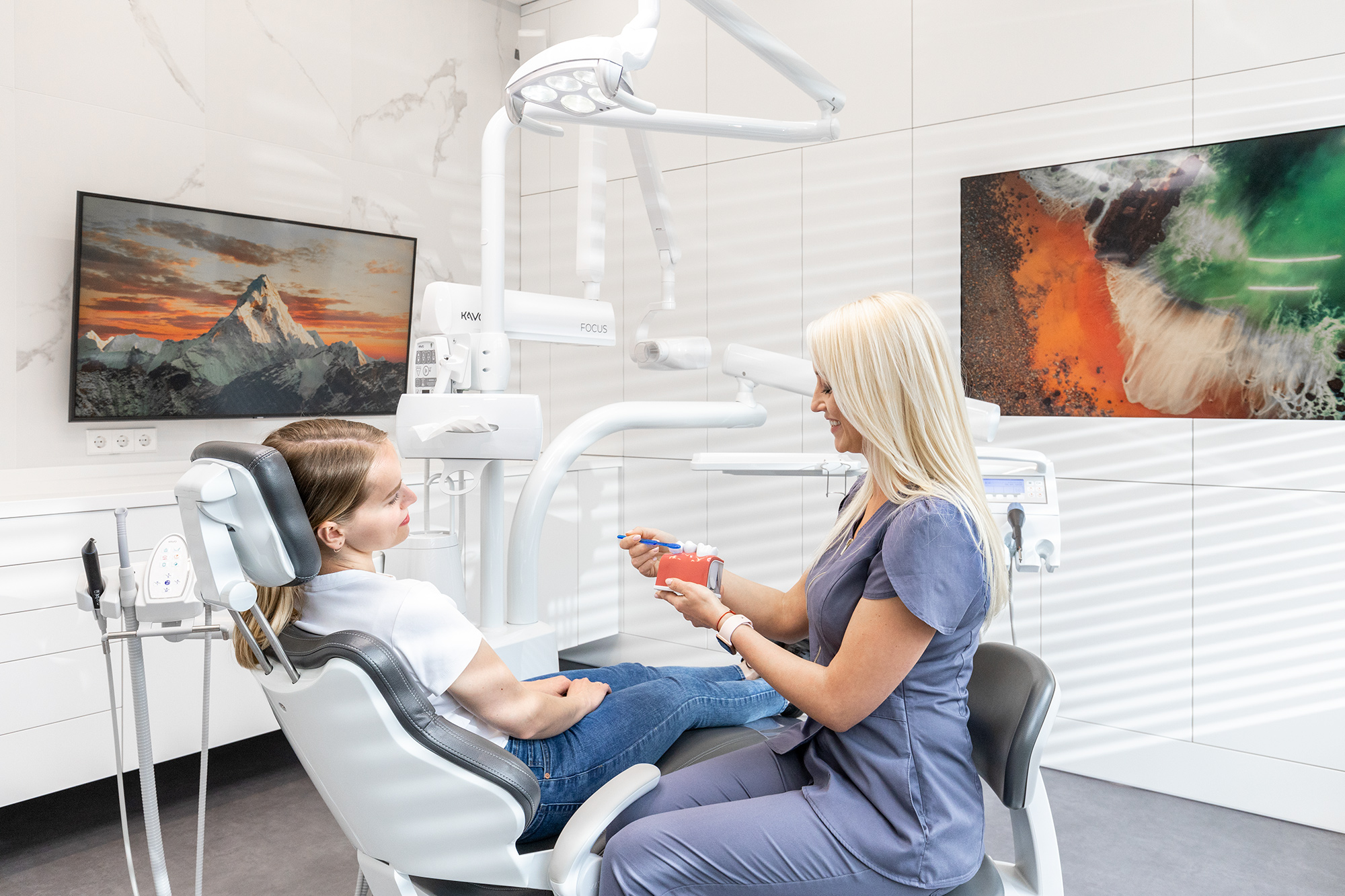 A White ir jauna un mūsdienīga zobārstniecības klīnika Rīgas centrā, kas aprīkota ar nozares jaudīgākajām un precīzākajām tehnoloģijām ar mērķi piepildīt katra klienta sapni par skaistu smaidu. Klīnika piedāvā plašu pakalpojumu klāstu, padziļināti darbojoties estētiskajā, atjaunojošajā un rekonstruktīvajā zobārstniecībā. Esam augstas kvalitātes stomatoloģijas klīnika, kur darbs katrā solī tiek rūpīgi veikts ar mikroskopu un jaunākajām digitālajām tehnoloģijām, kas ļauj speciālistiem veikt savu darbu īpaši precīzi, nodrošinot ilgtermiņa mutes dobuma veselību. Laboratorija, kas atrodas turpat klīnikā, palīdz sasniegt augstvērtīgi precīzus rezultātus. Mūsu pieredzes bagātā komanda ar prieku un augstu atbildības sajūtu gaidīs Jūs A White mājīgajās telpās, lai parūpētos par Jūsu labsajūtu un zobu veselību.